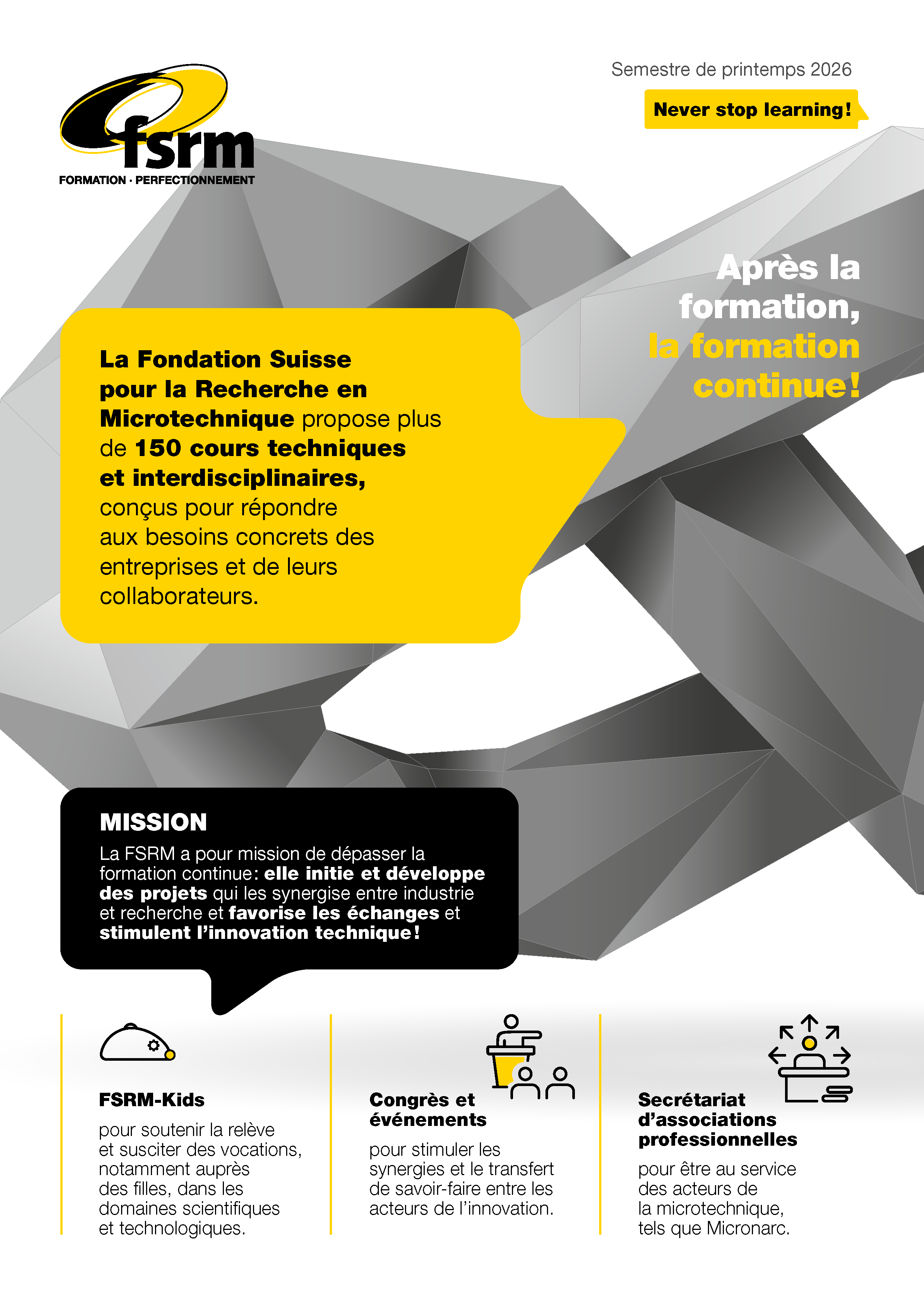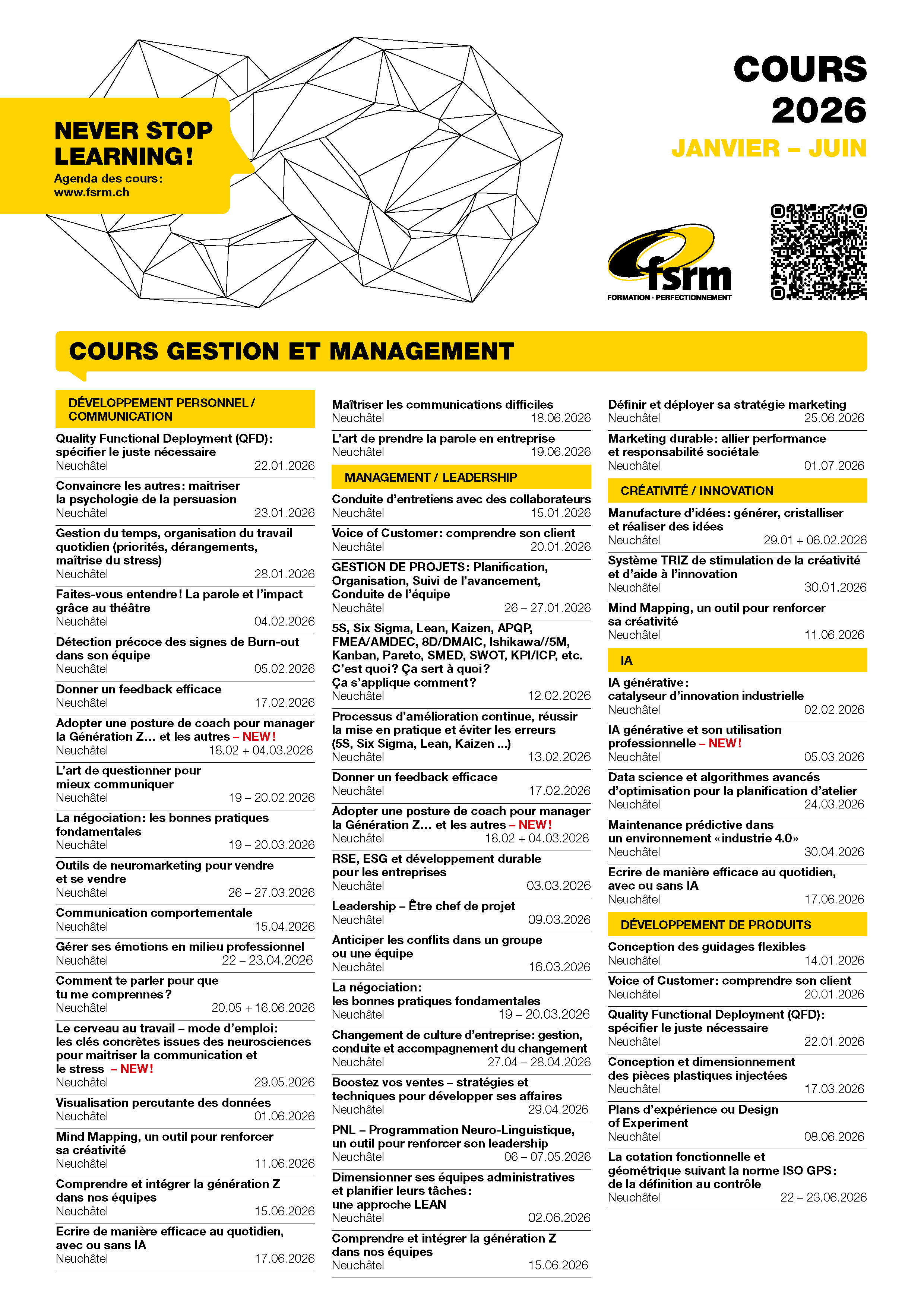 C’est le moment idéal pour découvrir de nouvelles opportunités de formation continue, approfondir vos compétences et relever de nouveaux défis — qu’ils soient techniques, managériaux ou liés à l’innovation.